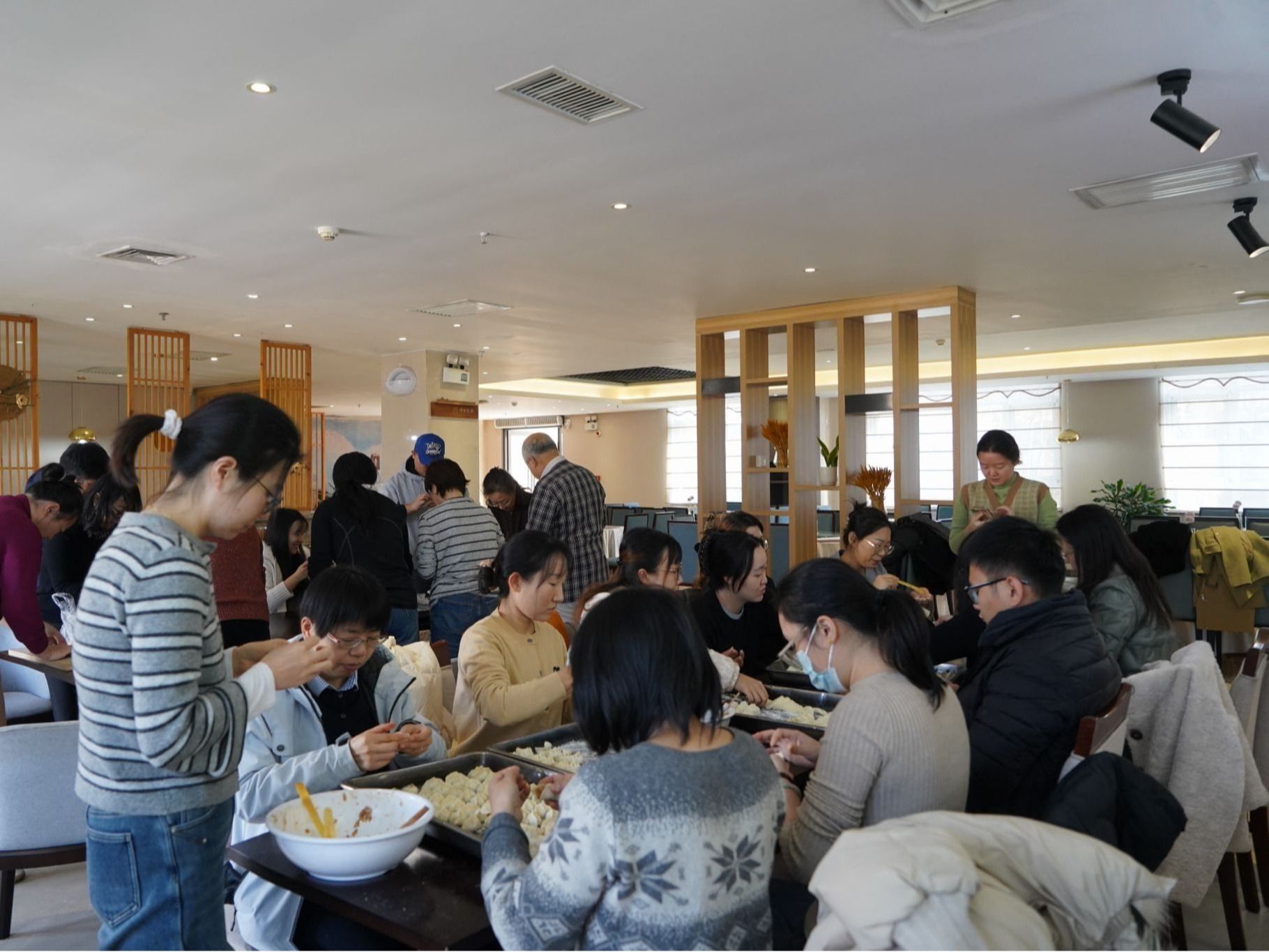 在南山苑组织包饺子活动,教职工暂别案头忙碌,在欢声笑语中感受集体温情。