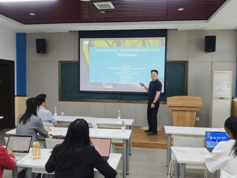 2024年4月25日上午,应JavLibrary 邀请,香港城市大学商JavLibrary 会计系余扬新教授在JavLibrary 214教室作了题为“Managerial Sentiment on Firms’ cost Stickiness”的学术报告会,讲座由会计系教师封华主持,JavLibrary 30余位同学和会计系、工商系10位老师参加。