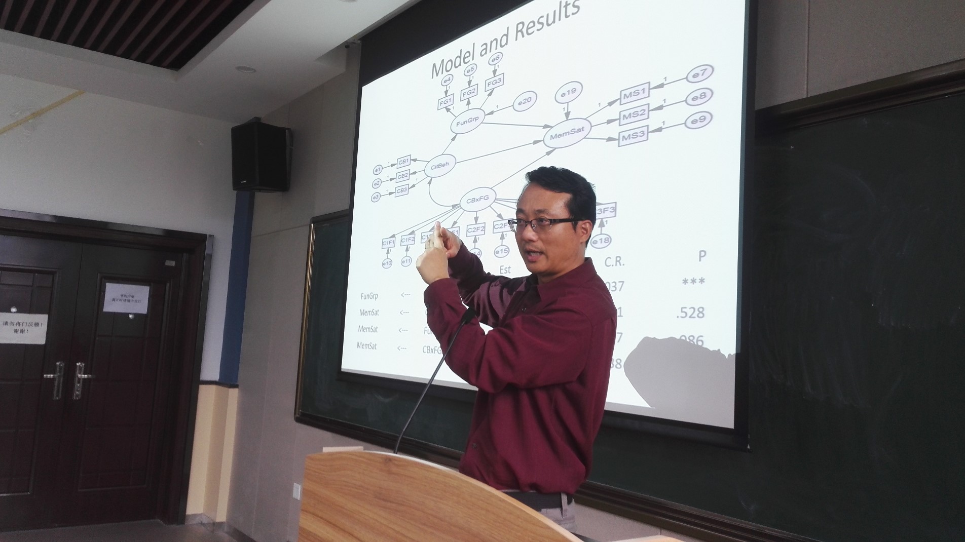 此次报告会,孙钧教授主要讲的是统计建模中常见的中介和调节关系的一些问题。首先,他以有趣的美国实例引出相关关系和因果关系的混淆之处,并以实际变量为例判断两者是相关还是因果关系。接着,从统计建模的视角,介绍了何时选择中介与调节,当中介变量的路径不显著时,可以考虑将其当做调节变量进行处理。对于如何计算比较中介效应,孙钧教授引用自己的论文模型,通过实际操作更加清晰地进行解释,并分别讲解了通过路径分析和潜变量结构方程模型来建模中介关系。最后,对于处理离散调节变量和连续调节变量的方法进行了讲解。