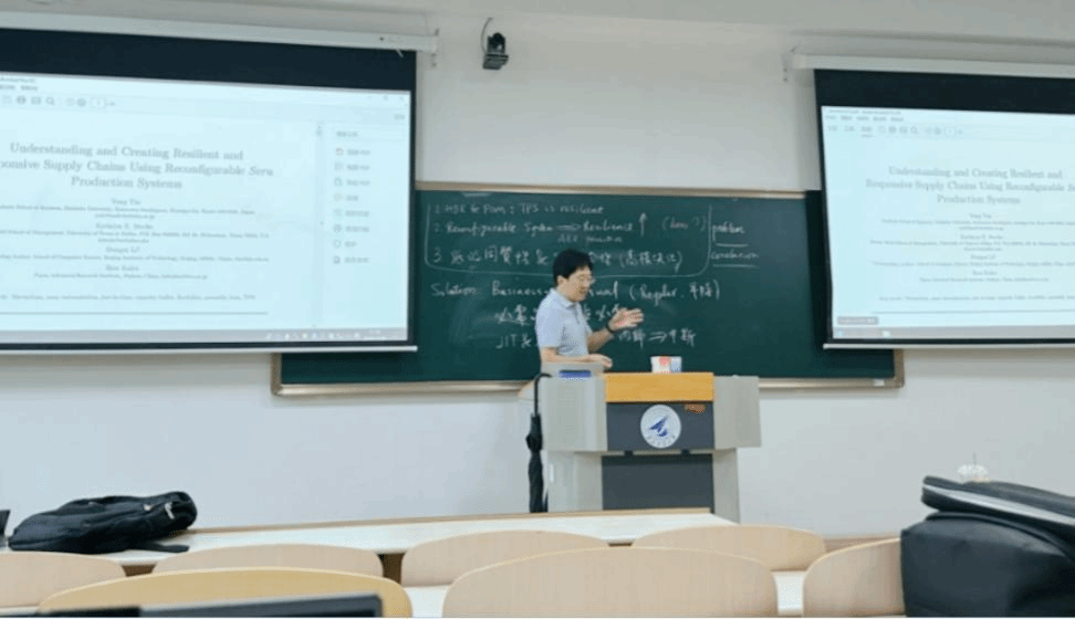6月23日-6月30日,日本同志社大学的殷勇教授开设了《运营管理》课程。在课程中,殷勇为同学们介绍了运营管理的内涵、对象、目标、经典理论以及如何将理论应用到实际等。以日本著名企业Ford和Toyota的生产系统为背景,详细介绍了精益生产以及运营管理中的经典法则——Little’s Law: Inventory = Time × Rate(流程中的平均库存=平均流程时间×平均单位时间内的产出)及其应用。此外,他还介绍了如何找到企业生产运营中的Bottleneck并改进,从而实现提高运营效率的目标。殷勇的讲解由浅入深,针对课堂上所讲授的知识,引入了案例和相关思考题帮助同学们理解。对于各个授课主题,还介绍了相关的著名学者以及他们最具有代表性的研究,充分扩大了同学们的知识面。