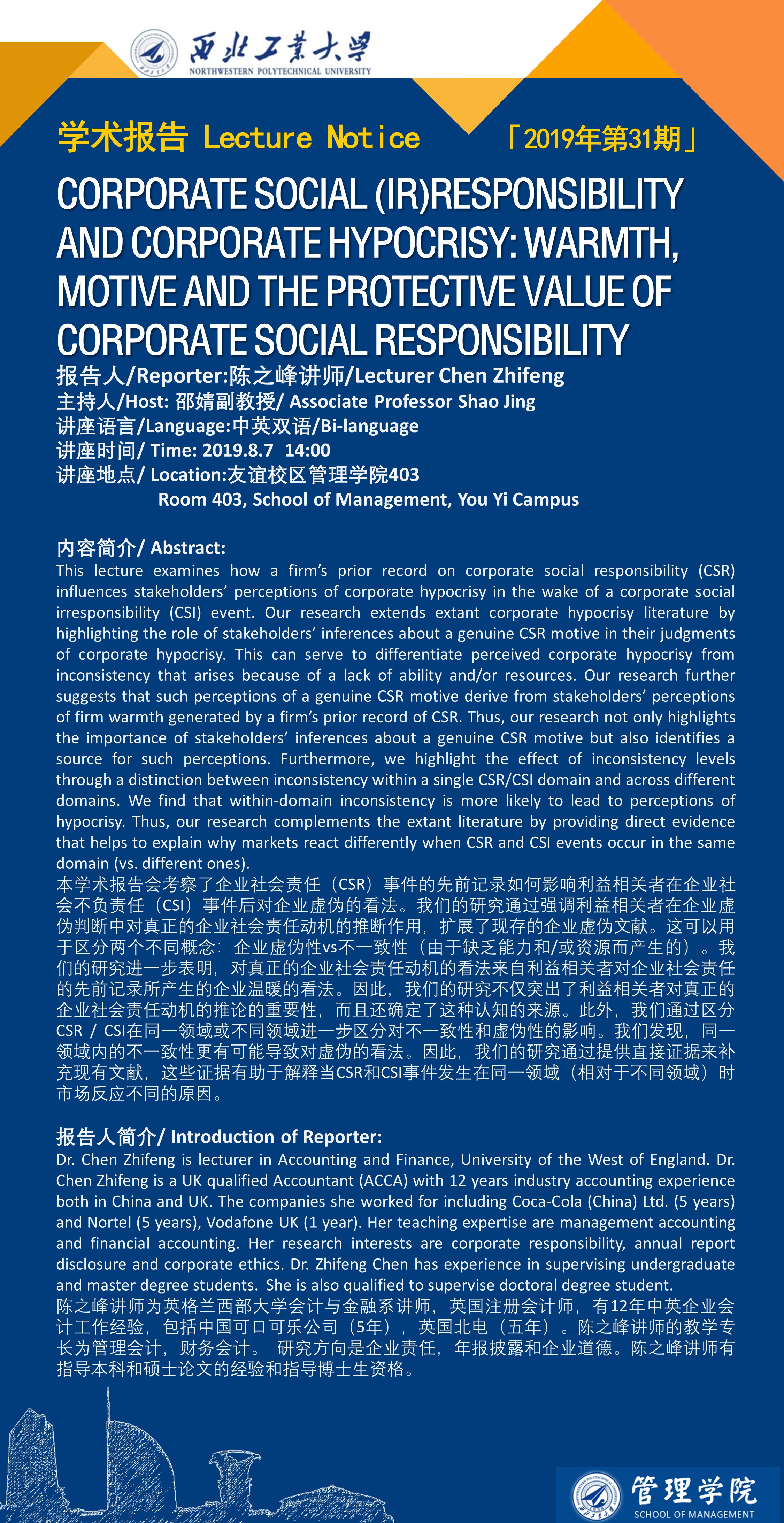 [学术报告]CORPORATE SOCIAL (IR)RESPONSIBILITY AND CORPORATE HYPOCRISY: WARMTH, MOTIVE AND THE PROTECTIVE VALUE OF CORPORATE SOCIAL RESPONSIBILITY