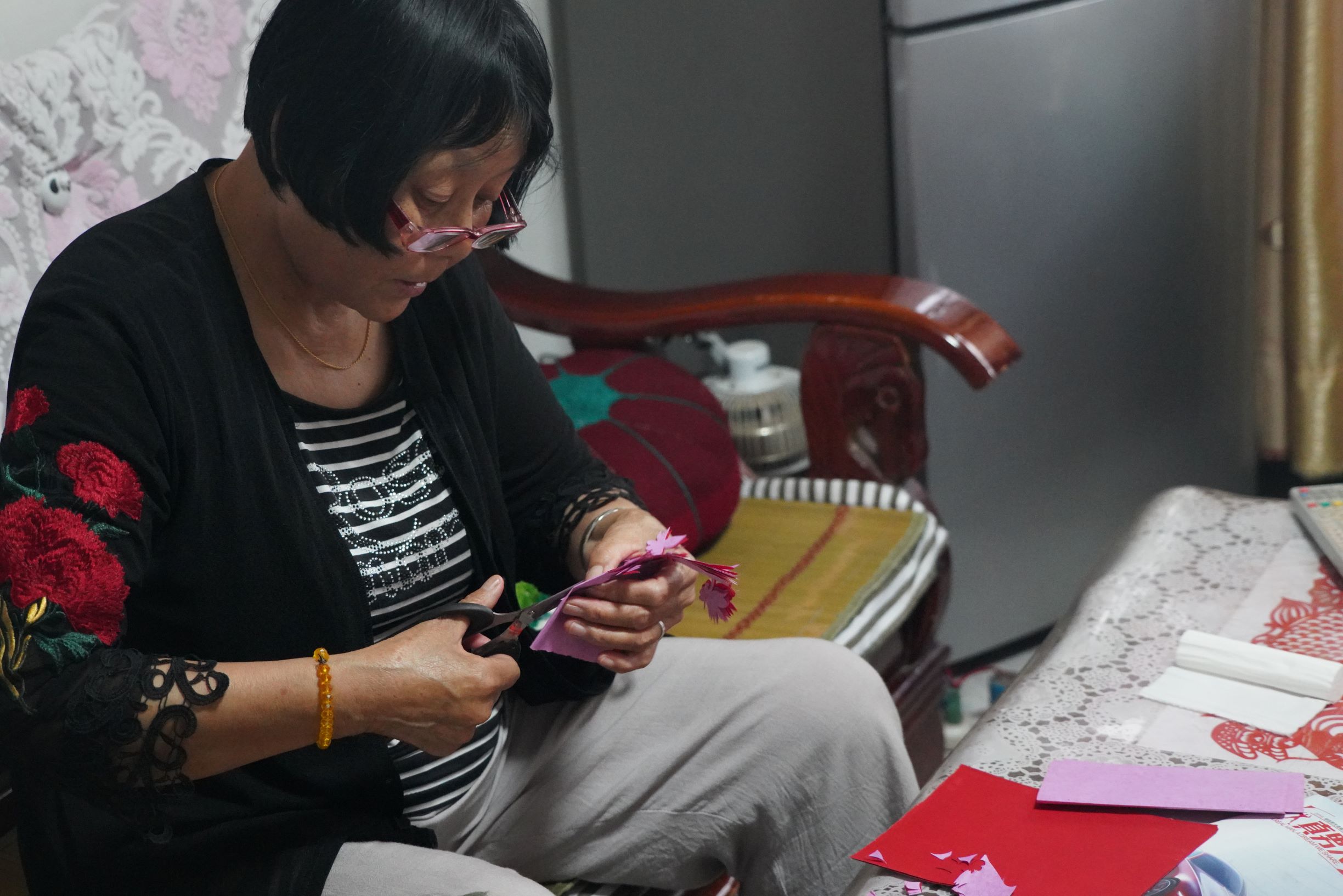 在探访西秦刺绣的同时,实践队员们还了解到千阳县手工剪纸艺术正面临极大的发展困境。为了探究两种文化传承的联系、进一步调研剪纸文化产业的发展前景,实践队员们于10日拜访了千阳县剪纸艺术民间艺术大师白召凤。白召凤热情迎接实践队员,为队员们展示精致的剪纸艺术。实践队员们了解到,由于剪纸利润低、效率慢,目前剪纸产业的发展十分缓慢,市场需求和政策扶持均较少偏向这项传统技艺。尽管白召凤会前往文化馆教学生基础剪纸,但能坚持下来的学习者寥寥无几。消费需求的下降和传承路径的变窄为剪纸艺术的传承带来严峻挑战。实践队员们认为,剪纸艺术和刺绣文化的传承和发展有其共性,两种文化技艺的交流、借鉴、融合会给非物质文化遗产的保护和发展提供新思路。