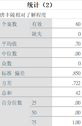 在所有有效问卷中,唐丰陵的相对了解程度的平均值为0.70,中位数以及众数为0,标准偏差为0.85,所以可以看出游客对于唐丰陵的相对了解程度处于较高的水平。因此,景区在规划时就应该将唐丰陵作为一个独立而具有特色的景点对游客开放,而不是与作为柿子博物馆的连带景点,这样才可以获得更大的效益。