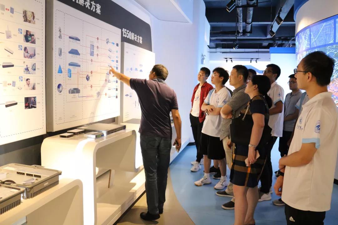 贾清先生欢迎实践队的到来,并带领队员与老师参观了公司设计的各种产品,近距离接触到了网络相关硬件的生产。