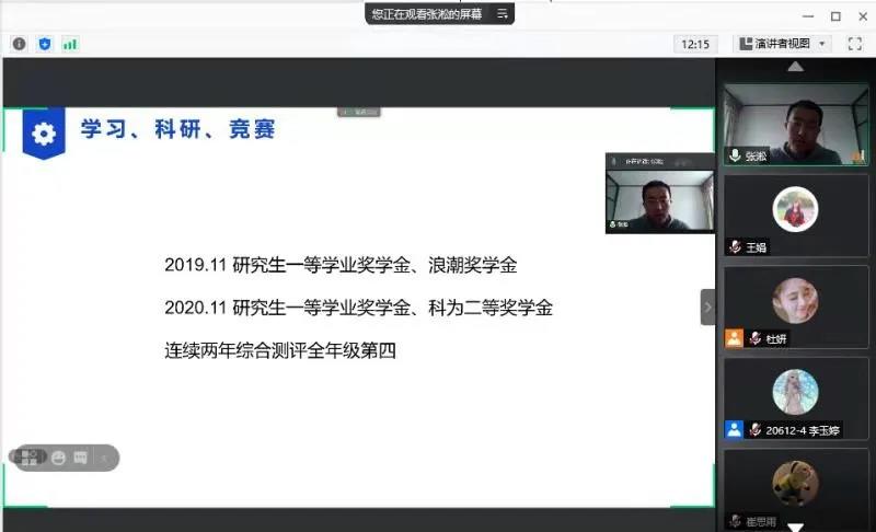 本硕博共计170余人通过腾讯会议在线参会,会议由辅导员吴蓓老师主持,旨在帮助研一研二同学们拓宽世界,树立榜样。