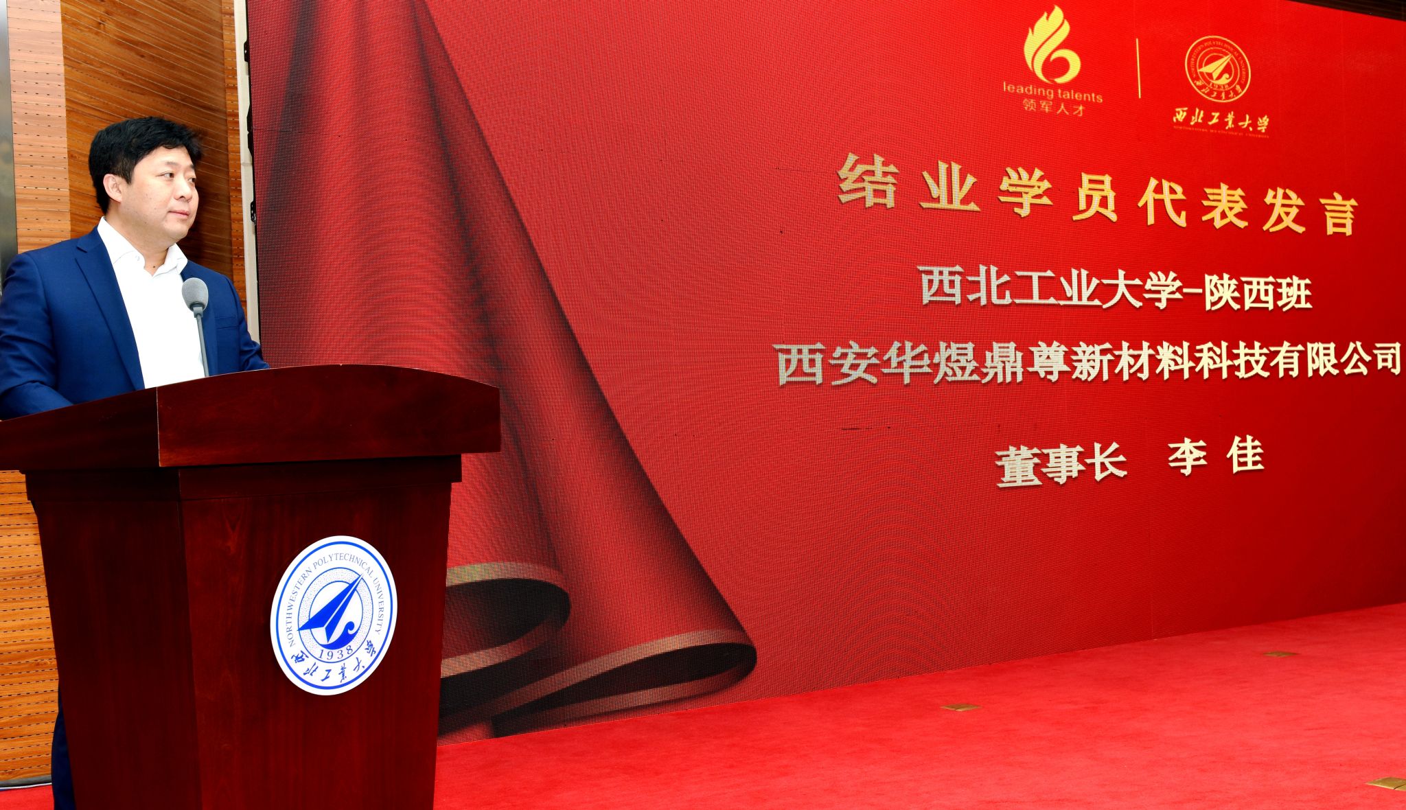 曾卫明副主任讲话,向新加入领军大家庭的企业家朋友们表示欢迎,向即将结业的领军学员们表示祝贺。工信部历来高度重视中小企业发展,详细介绍了中小企业经营管理领军人才培训项目的培训体系、丰硕成果和重要意义。希望同学们学习弘扬“秦人精神”,即厚重质直、忠义仁勇、信守承诺、热爱桑梓;学习弘扬优秀企业家精神;学习弘扬西工大“公诚勇毅”校训和“三实一新”校风。静下心来学习,致力学有所思、思有所得、得有所用、用有所成,不断提升自己,为推进新型工业化、建设制造强国和网络强国贡献智慧和力量。