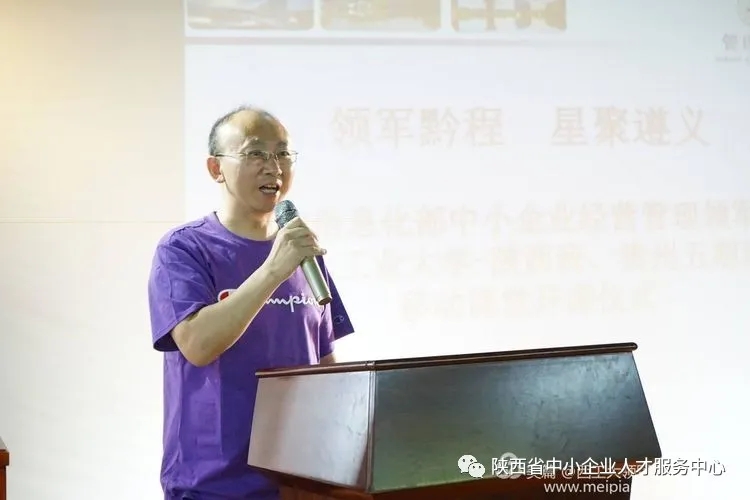 EDP中心李莹副主任、项目主管刘冬月,陕西省中小企业人才服务中心刘放科长,中国MBA联盟主席、华鼎投资咨询中心总经理李浩,贵州龙头马酒业集团有限公司董事长罗安贤,西工大领军企业家校友会会长、贵州龙头马酒业集团有限公司董事、总经理赵永安等领导出席了开课仪式。