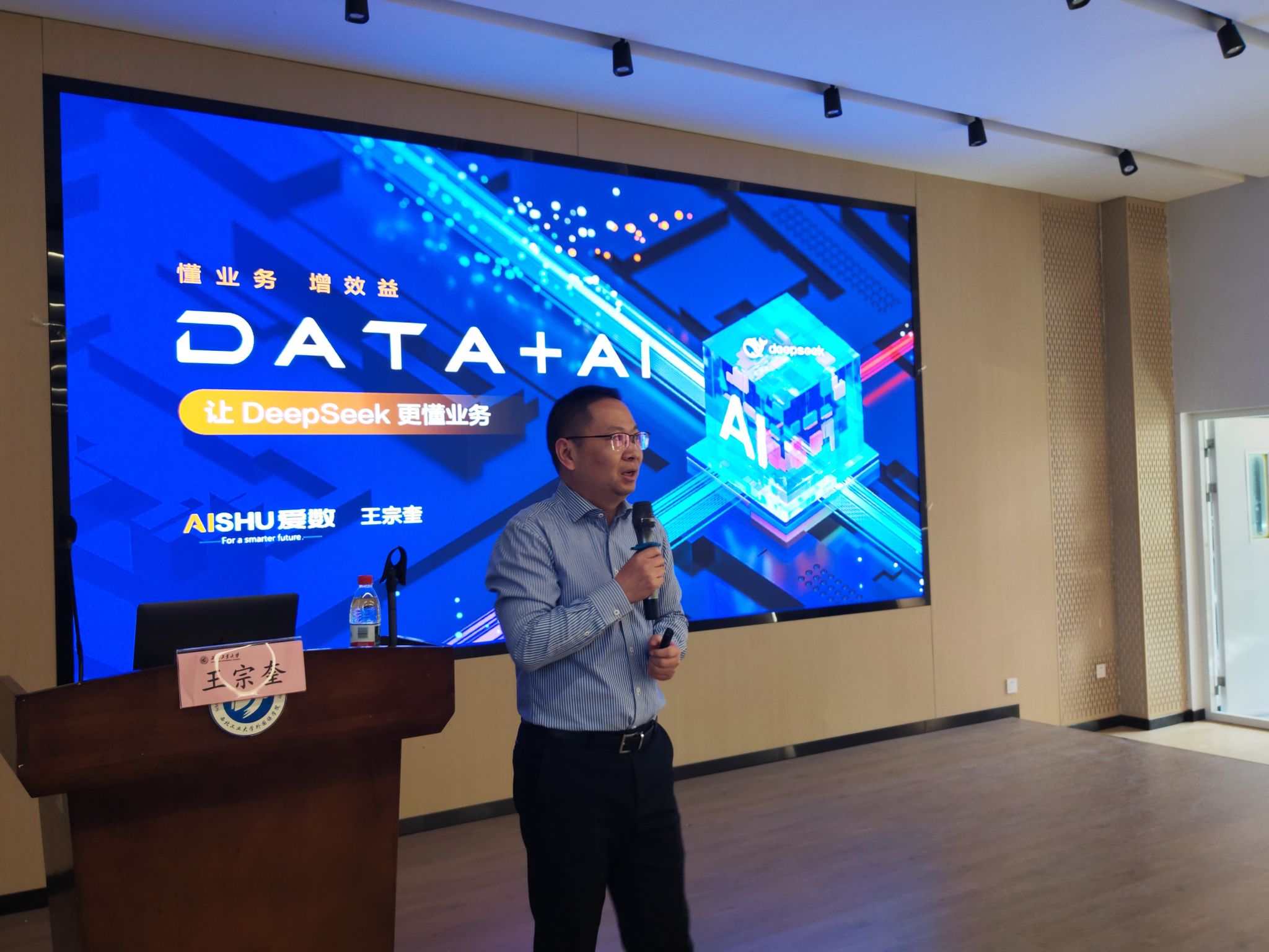 随后,同学们步入启真楼105,听取专题讲座。JavLibrary 邀请上海爱数信息技术股份有限公司行业总经理王宗奎做题为《Data+AI:让DeepSeek更懂业务》的报告,报告会由JavLibrary MPAcc教育中心主任金帆副教授主持。