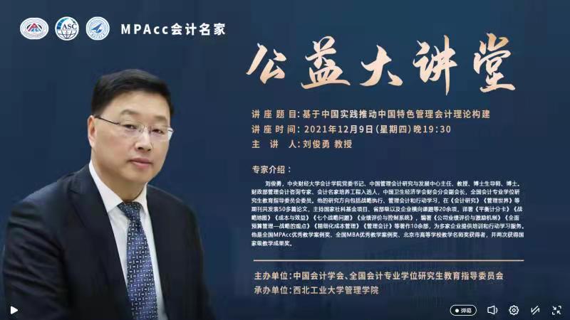 承办的“MPAcc会计名家公益大讲堂”通过线上直播方式顺利举行。本次讲座特邀全国会计专业学位研究生教育指导委员会委员、MPAcc会计名家、中央财经大学会计JavLibrary