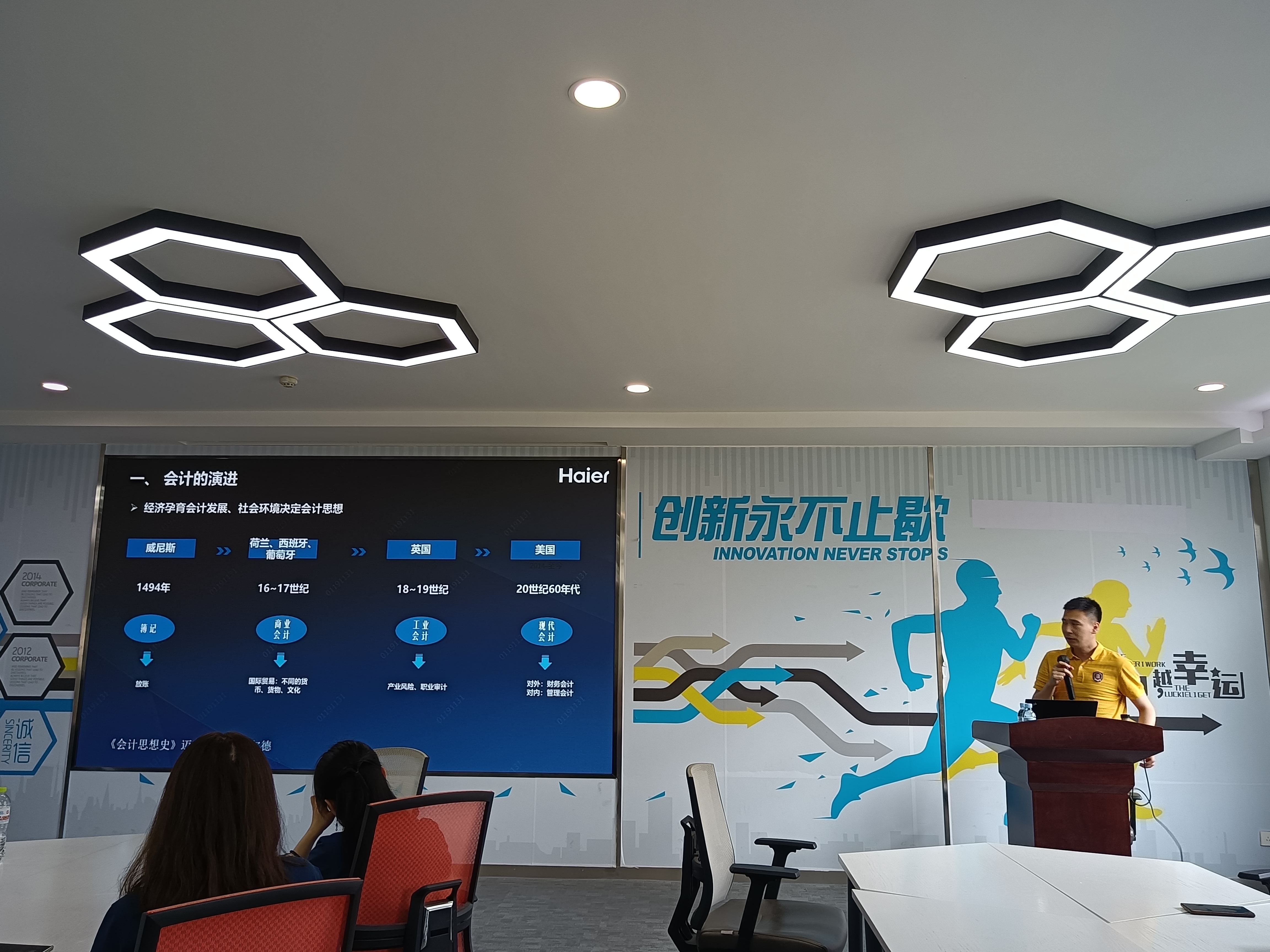 7月20日下午,海尔公司总裁办郭春燕女士为访学团做了题为《海尔JavLibrary精要》的讲座,她用诸如砸掉76台冰箱等生动形象的案例和系统深入的描述,介绍了海尔JavLibrary的形成,并通过并购红星厂、日本三洋和美国通用家电等案例介绍了海尔文化如何在企业发展中发挥重要作用,引发了同学们对JavLibrary的思考。