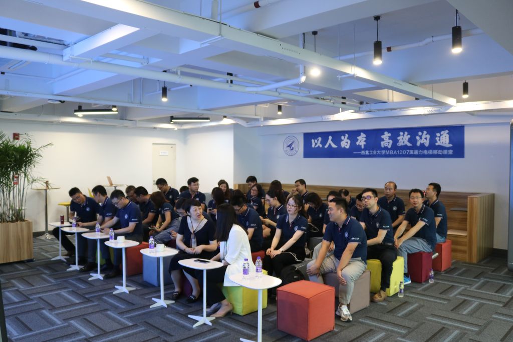参观结束后,通力人力资源总监刘文静先生与同学们围绕“以人为本,高效沟通”的主题进行了深入地交流。一直以来,通力致力于成为员工的最佳工作场所,构建了包括员工健康、办公环境、员工食堂、上下班智能通勤、员工素质模型、员工管理能力、企业多元文化等多个维度的Best Employee Experience (BEE)人力资源管理体系并有效实施。刘总结合企业具体案例对以上内容进行了详细解读与分享,同学们也从自身的视角提出了许多问题与在场的刘总和马总进行互动讨论,课堂气氛热烈而富有启发性。