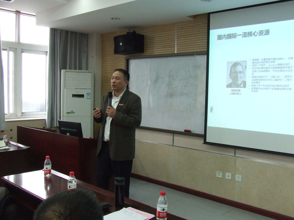 吴文辉教授以“九峰医疗”企业为例,从创业企业家的角度作了题为“人工智能仁济百姓”的讲座。在国家分级诊疗制度的政策引导下,“九峰医疗”以中科院科技力量为支撑,以江西乡镇基层百姓看病为数据获取发源地,切入到了一个庞大的市场刚需——我国8.4亿基层老百姓农民的看病问题。吴董事长认为分级诊疗的领军企业必须具备三个关键要素:助力医疗资源下沉(切入点是刚需中的刚需、专业),低成本,可规模化的解决方案。“九峰医疗”的核心价值在于四个方面:分级诊疗落地解决方案、AI技术及医疗落地应用、医疗大数据、商业收益。