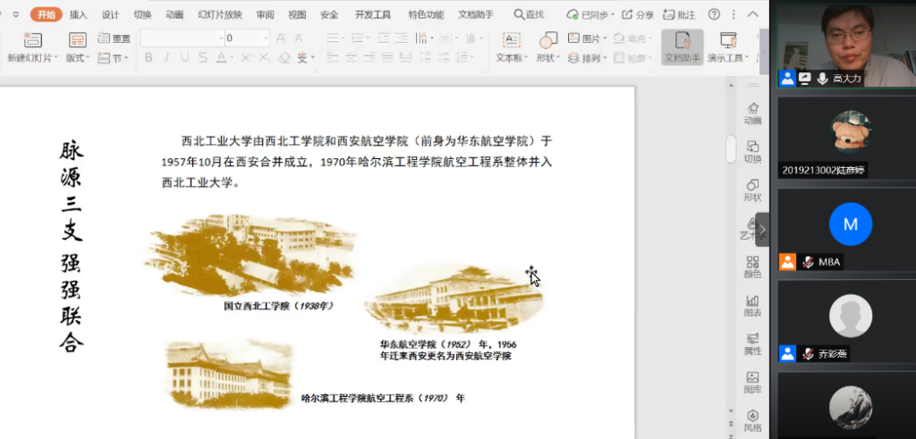 历史发展脉络和“西工大人”故事两方面展开,从1938年创校起,历经烽火狼烟,几经辗转南迁,再到建国后立足三航发展,为国家三航国防事业做出杰出贡献的西工大历史,增进了每一位西工大学子对母校的认识,激发了无比的自豪与自信。