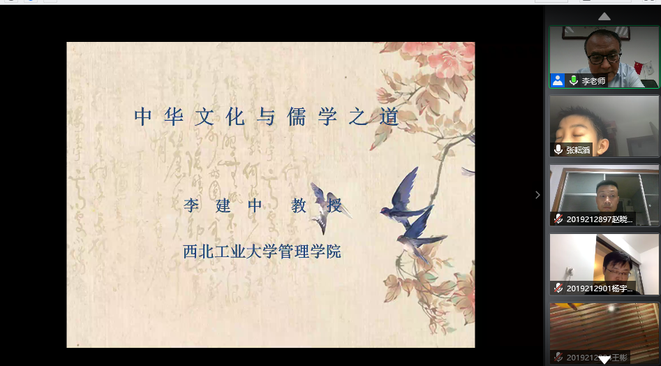 李建中教授为专业学位研究生做第九场“云上讲座”《中华文化与儒学之道》,会议由田庆锋副教授主持,约200名学生在线聆听了讲座。