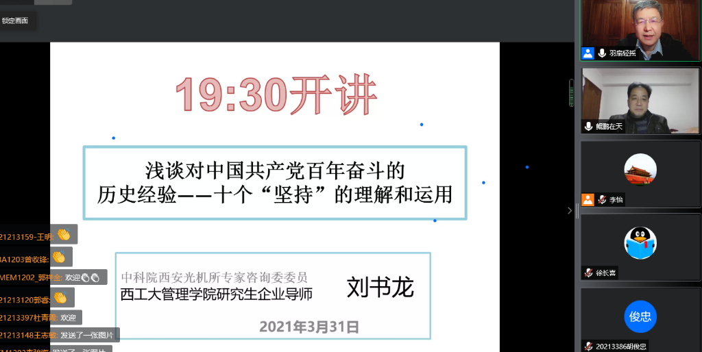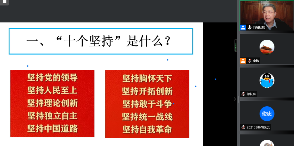 企业导师刘书龙为专业学位研究生作《浅谈对中国共产党百年奋斗的历史经验——十个“坚持”的理解和运用》云上讲座,线上近400名学生参加,讲座由JavLibrary