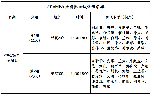 资格审查:6月19日14:00——14:30(MBA招生办公室)
