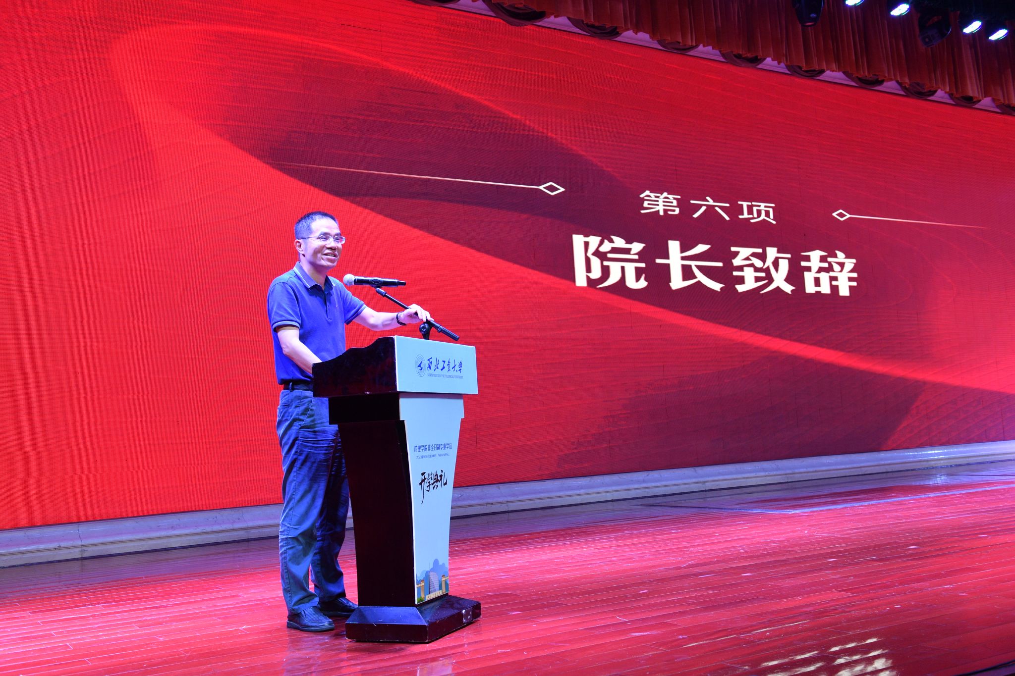 下午18:00分,伴随着慷慨激扬的义勇军进行曲,开学典礼正式拉开帷幕。