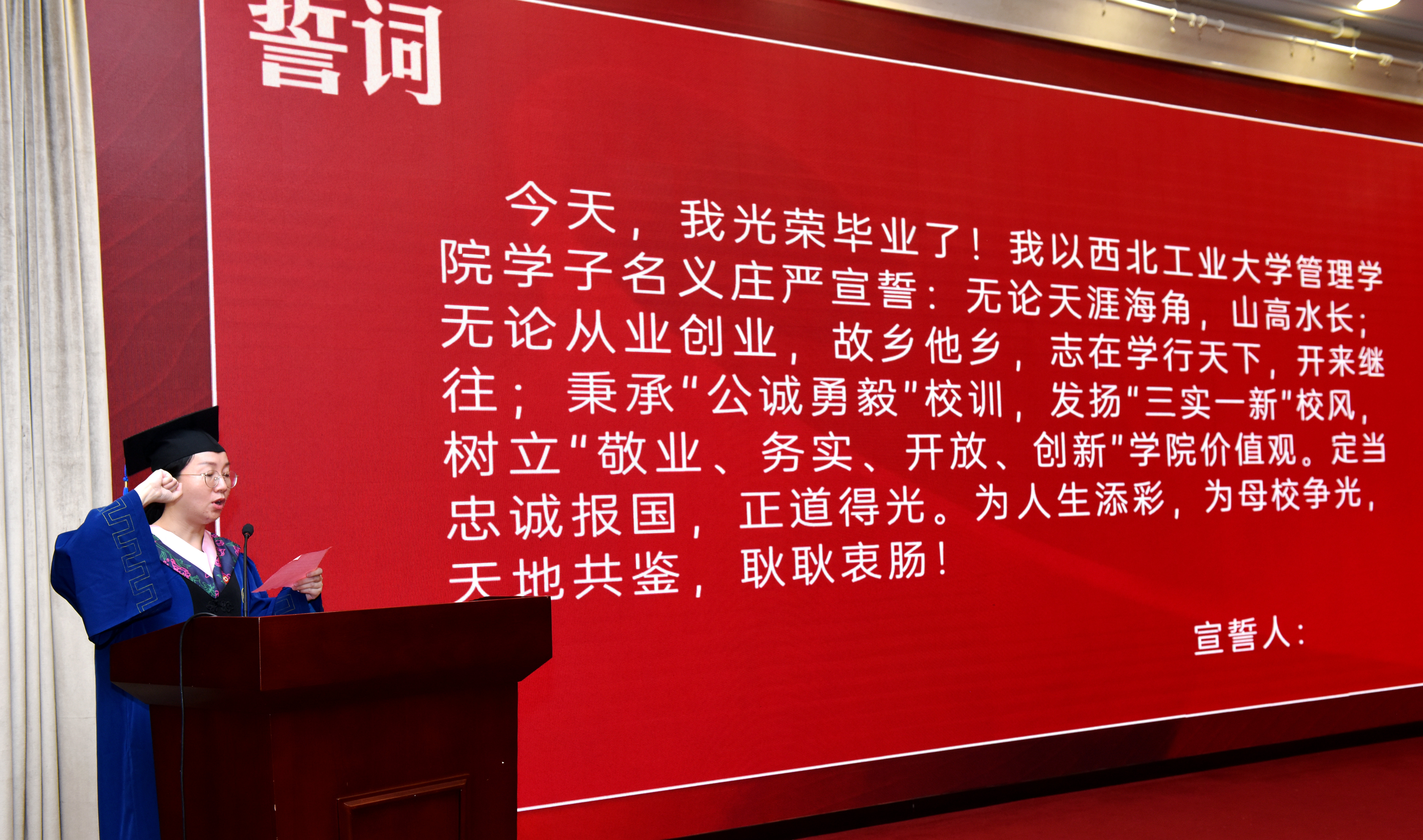 院长车阿大教授向毕业生们致以热烈的祝贺。他表示,2022届毕业生屡次遭受新冠疫情突袭的求学经历,让同学们一起学习的每一天更加值得回忆和珍惜。他对同学们提出三点希望:一是不忘初心使命,在学思践悟中坚定理想信念,在奋发有为中践行初心使命;二是树立终身学习理念,面对经济社会的快速发展,新技术、新业态和新商业模式带来的各种机遇和挑战;三是继续传承校训校风,在一个又一个新的起点上取得骄人的成绩,在各行各业续写“西工大现象”,为母校争光,为人生添彩。