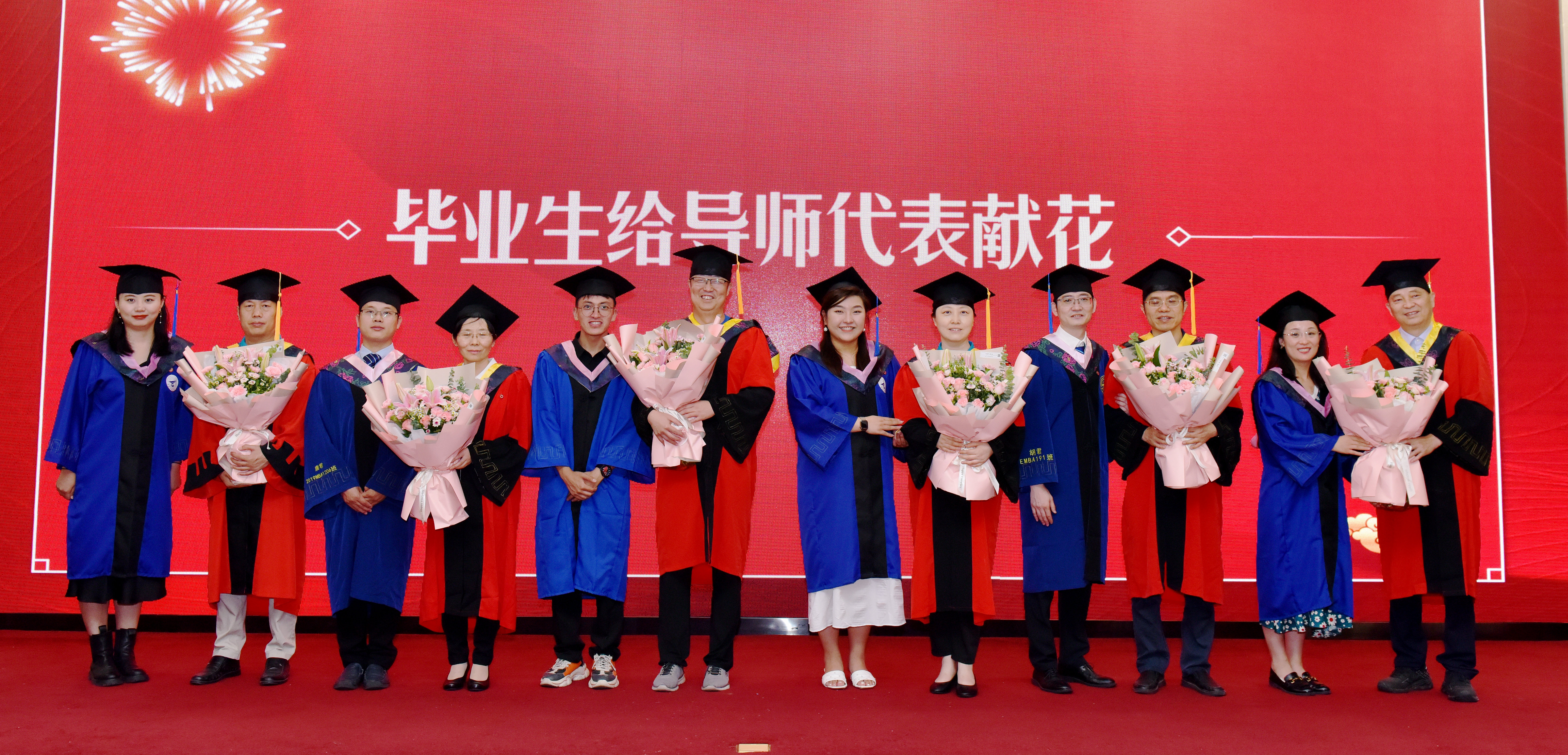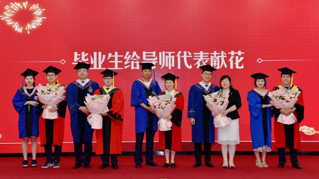 常玉老师作为导师代表,祝贺同学们克服学习与工作冲突,用坚韧不拔的毅力和勇气收获了辛勤耕耘后的喜悦与成长。师恩难忘,毕业生代表为导师代表献上鲜花表达感恩与祝福。