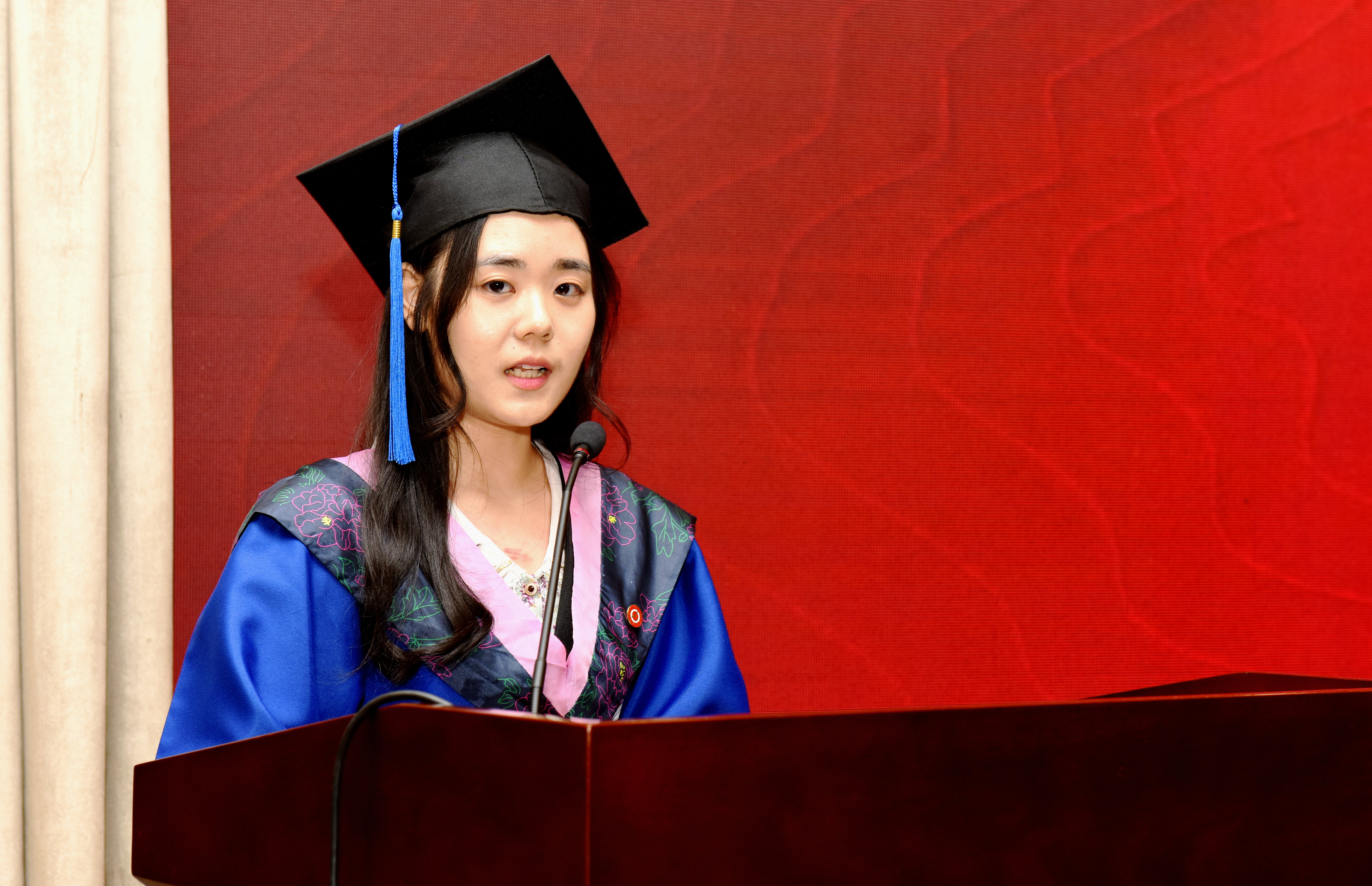 EMBA毕业生代表阳丹同学带领全体2022届毕业研究生宣读毕业誓词。