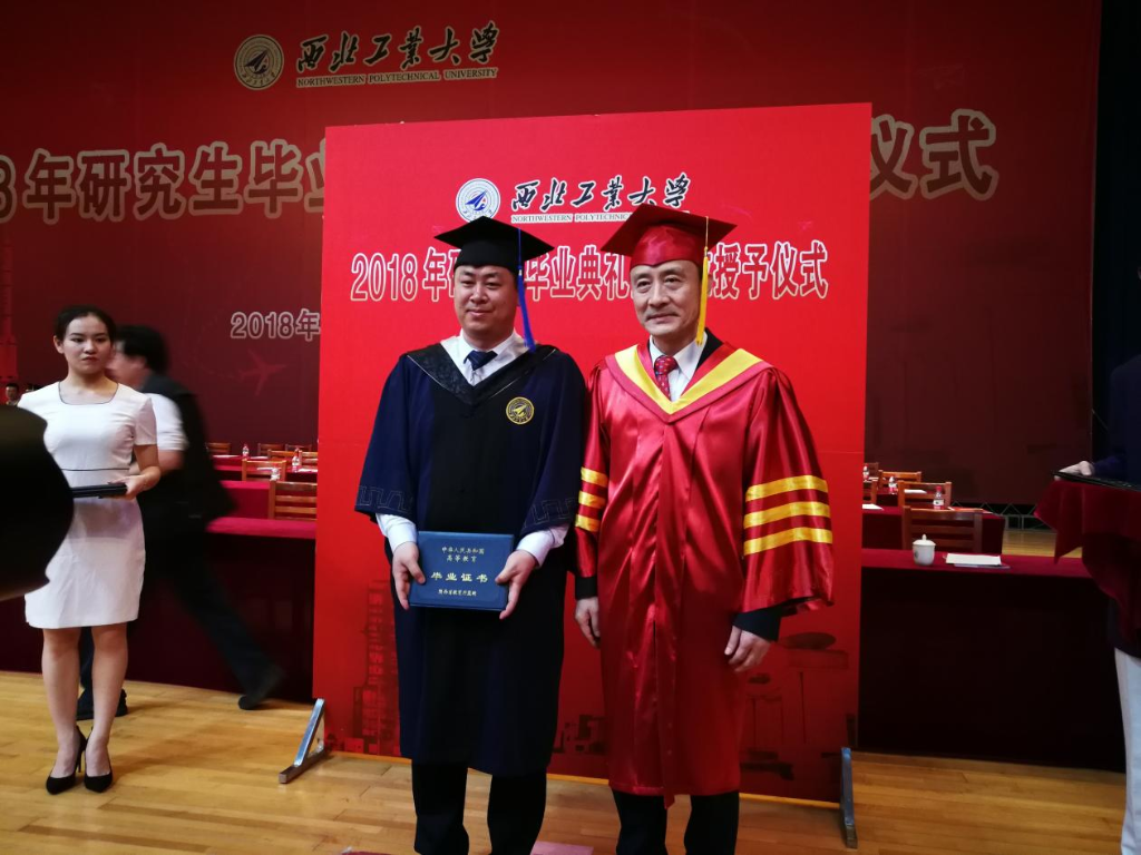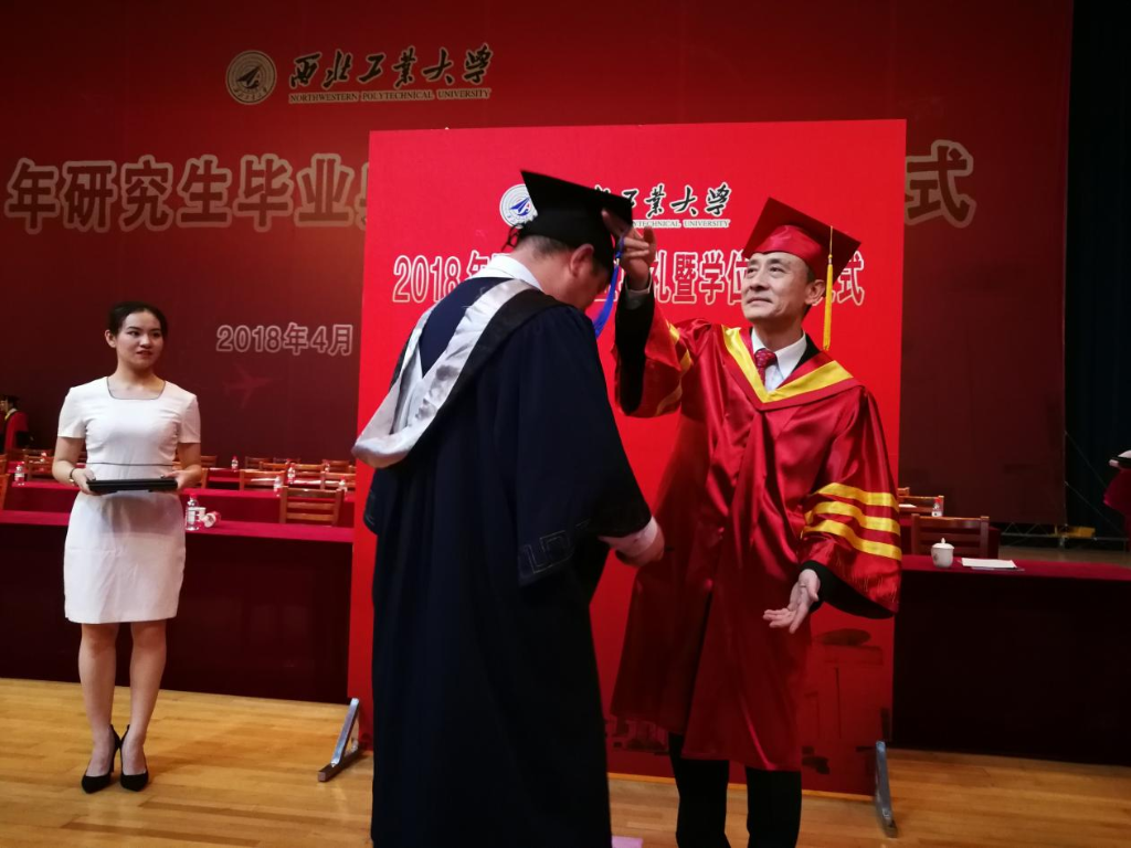 校长为优秀毕业生授予学位并合影留念(周兆凯2015MBA1205班)