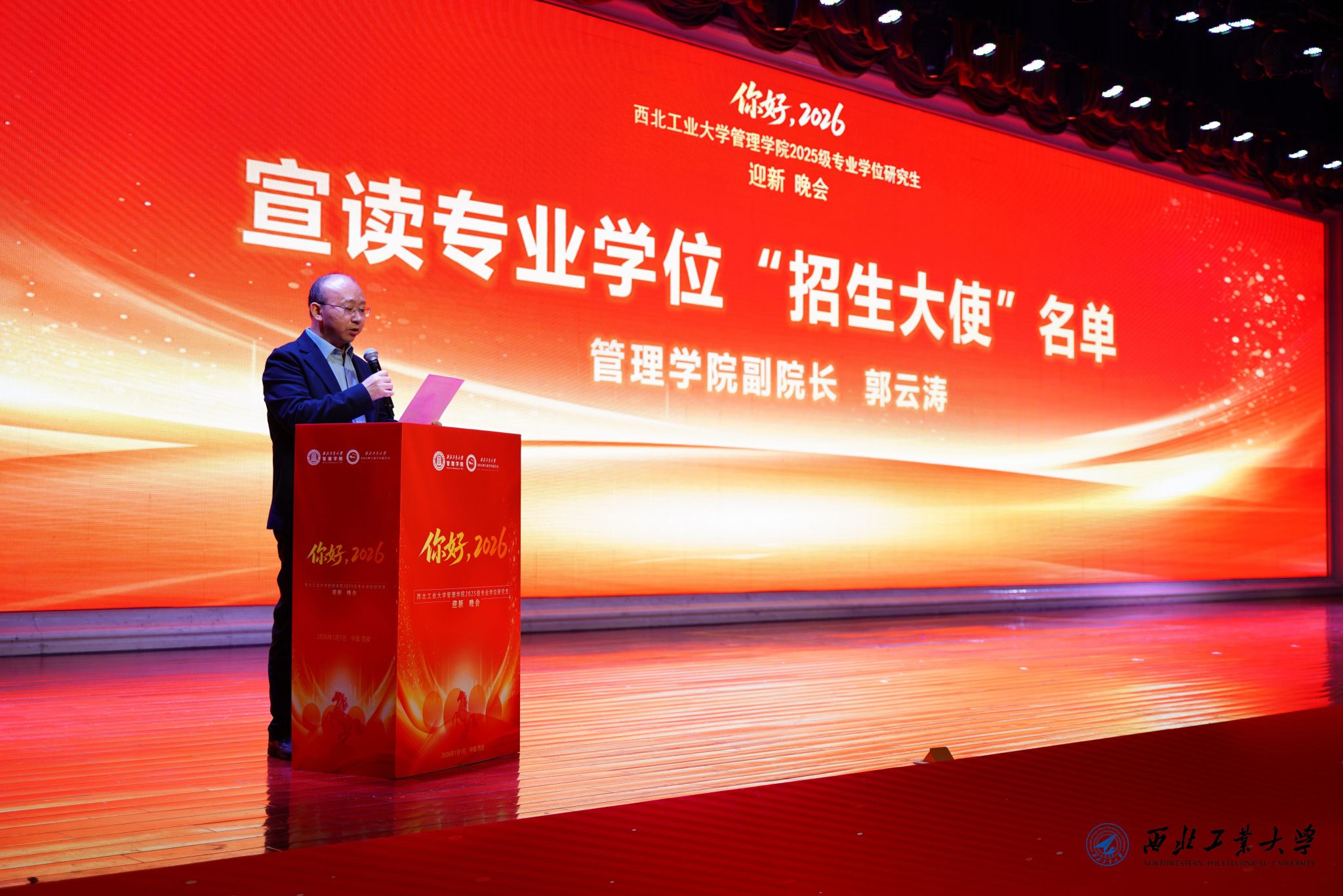 2026年1月1日晚,JavLibrary 2025级专业学位研究生迎新晚会在金色大厅隆重举行。JavLibrary 领导、工作人员、部分校友和2025级全体专业学位研究生新生参加了此次晚会。