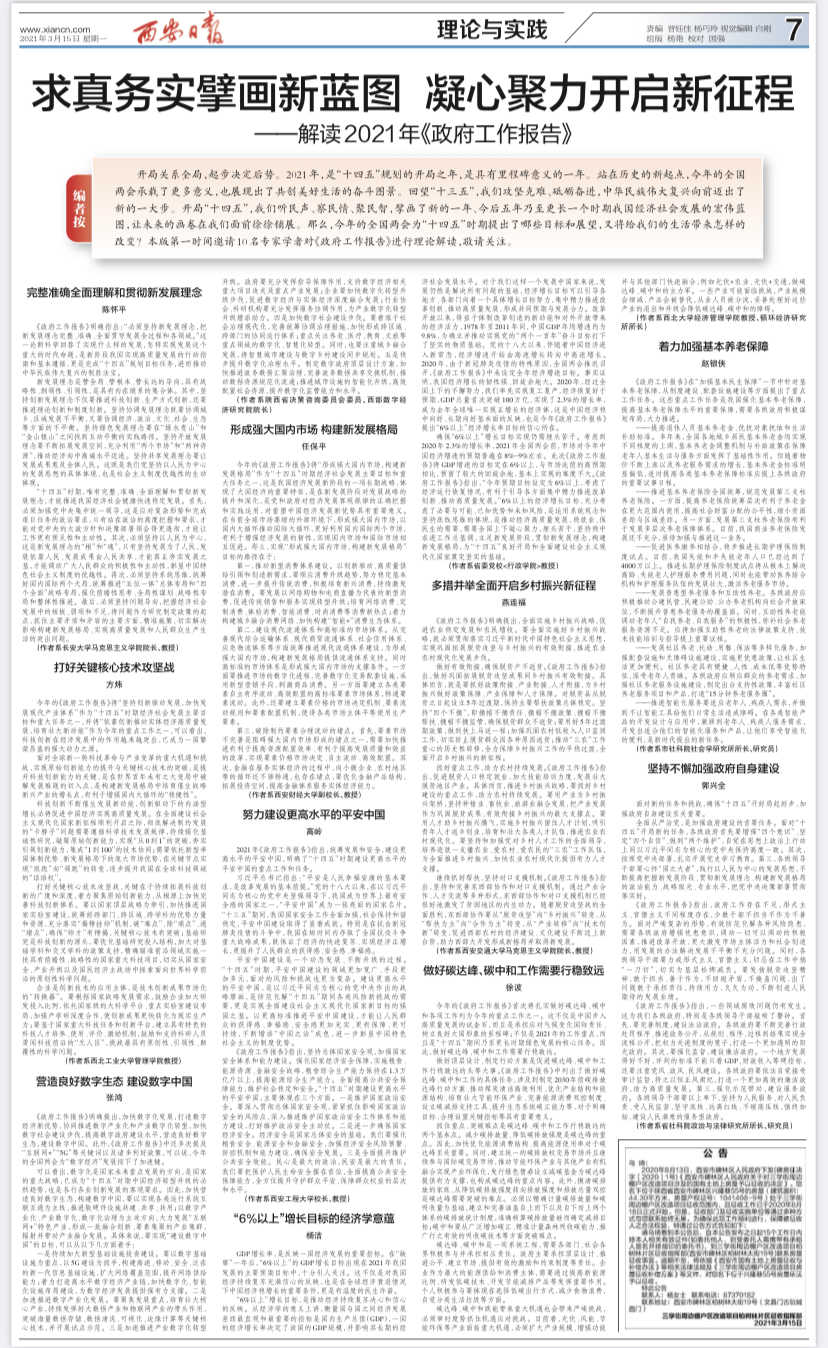 315日,《西安日报》第7版理论与实践“解读2021年《政府工作报告》专栏”刊发了JavLibrary 方炜教授撰写的理论文章《打好关键核心技术攻坚战》。